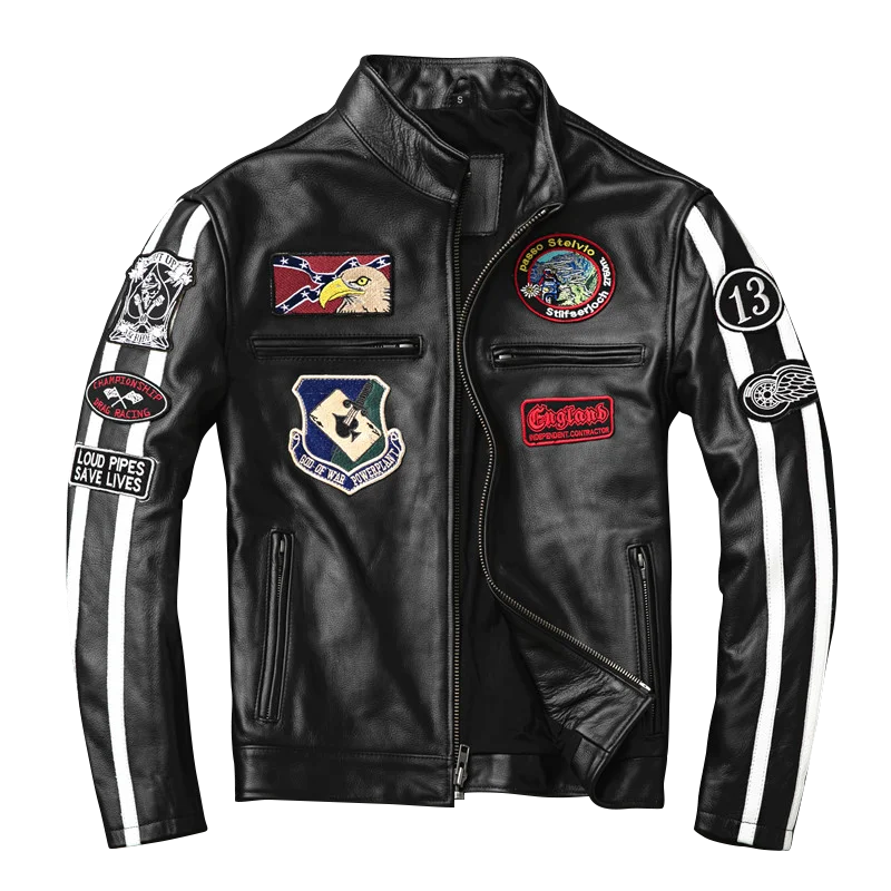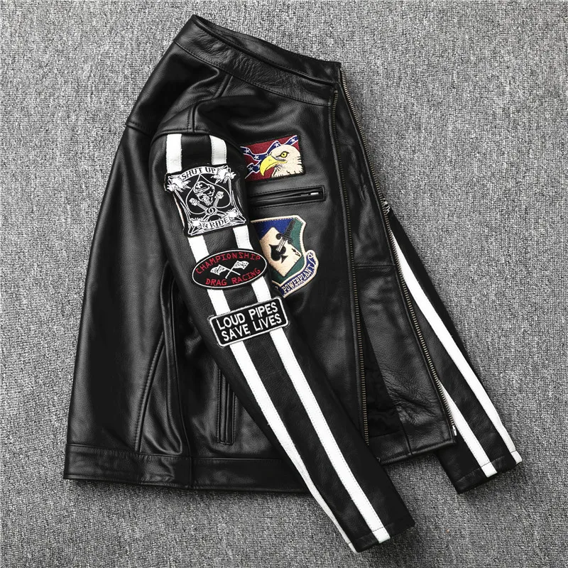 Best Price 2019 Black Men Slim Fit American Motorcycle Leather Jacket Plus Size XXXL Genuine Cowhide Biker's L