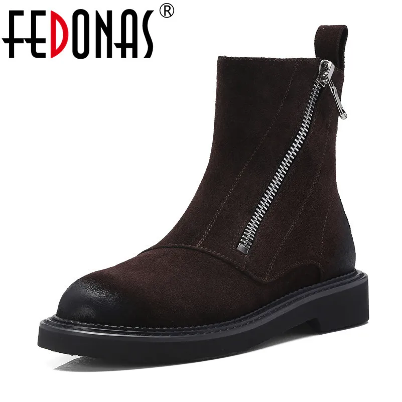 Wholesale FEDONAS Cow Suede Ankle Boots Thick Heels Autumn Winter Short Ladies Shoes Woman Top Quality Motorc