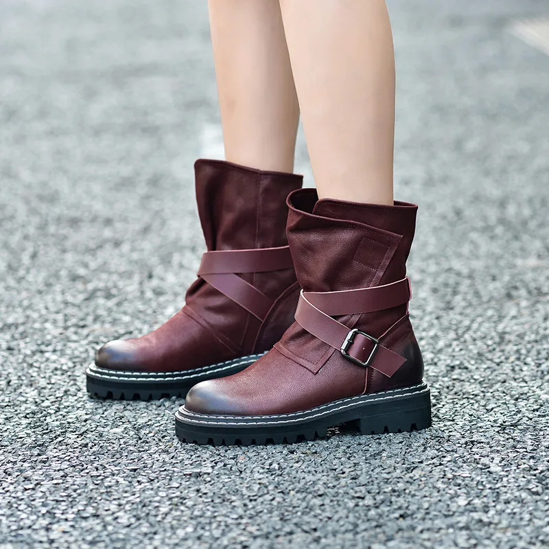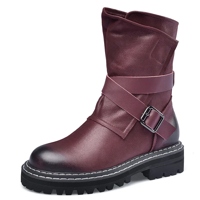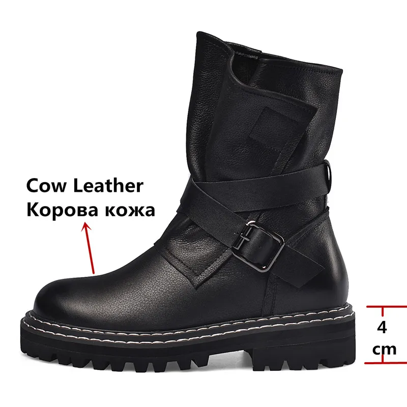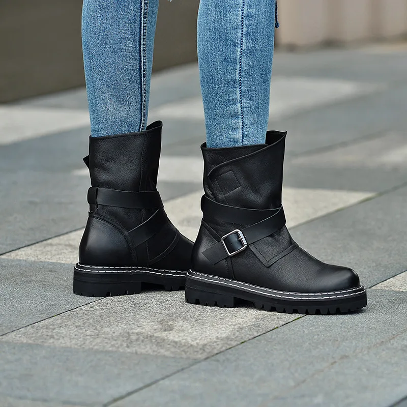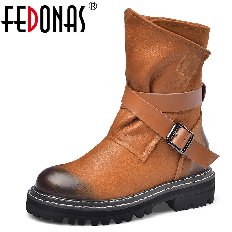 Best Price FEDONAS New Metal Buckle Women Ankle Boots Female Punk Motorcycle Boots Warm Genuine Leather Short