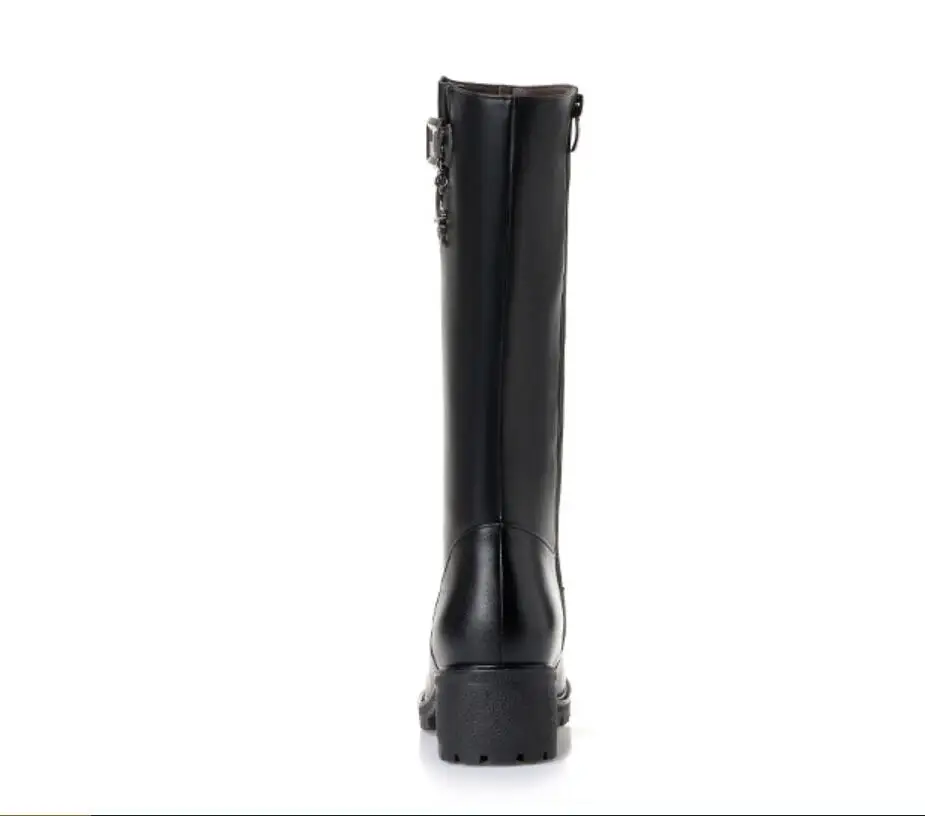 Big Discount D-397 Big size women winter boots genuine leather women motorcycle boots warm wool Thick heel mid t
