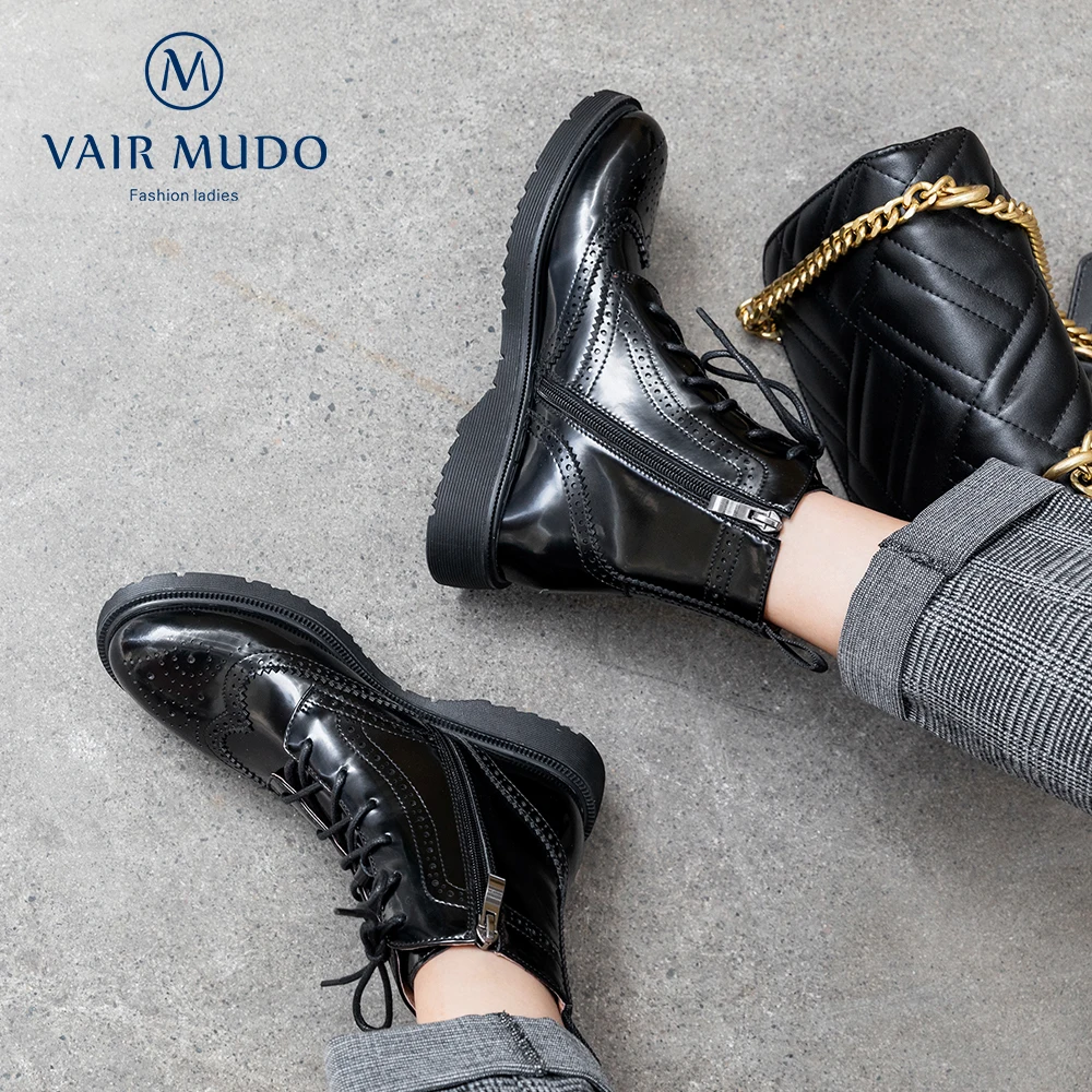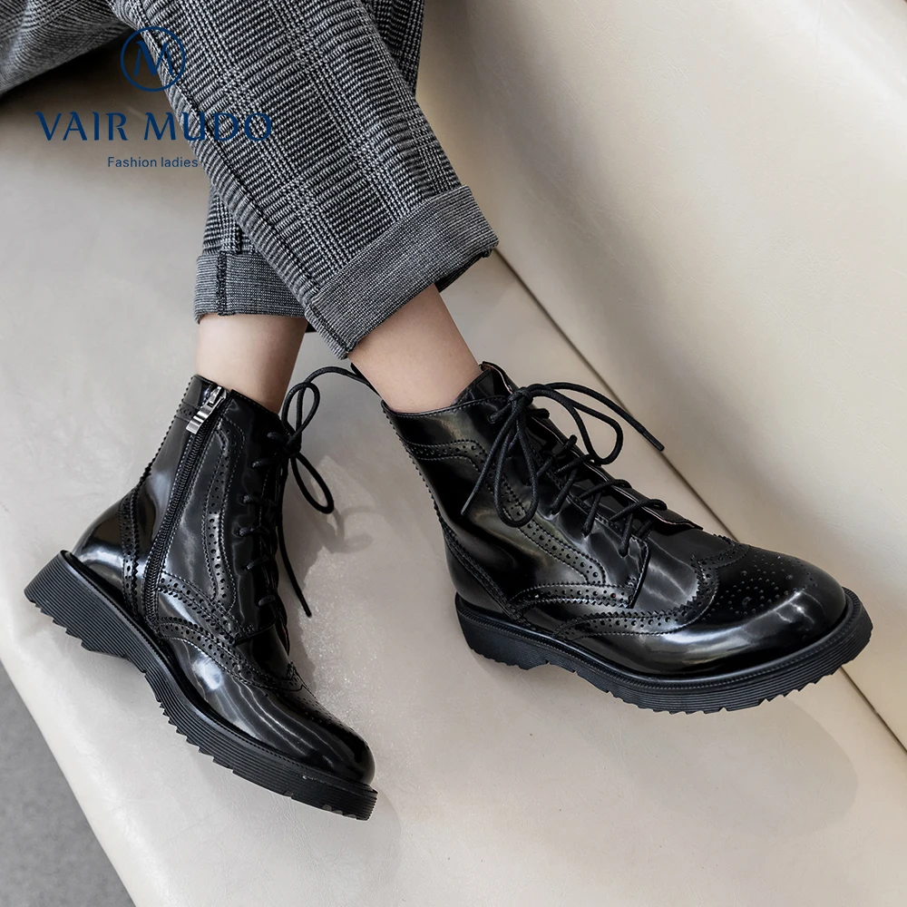 Promo VAIR MUDO New Retro Fashion Winter Ankle Boots Lace up women Boots High-quality Woman Shoes With Wa