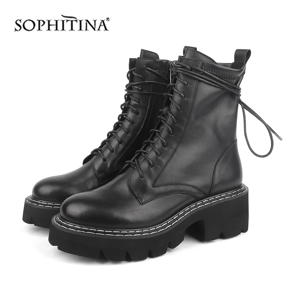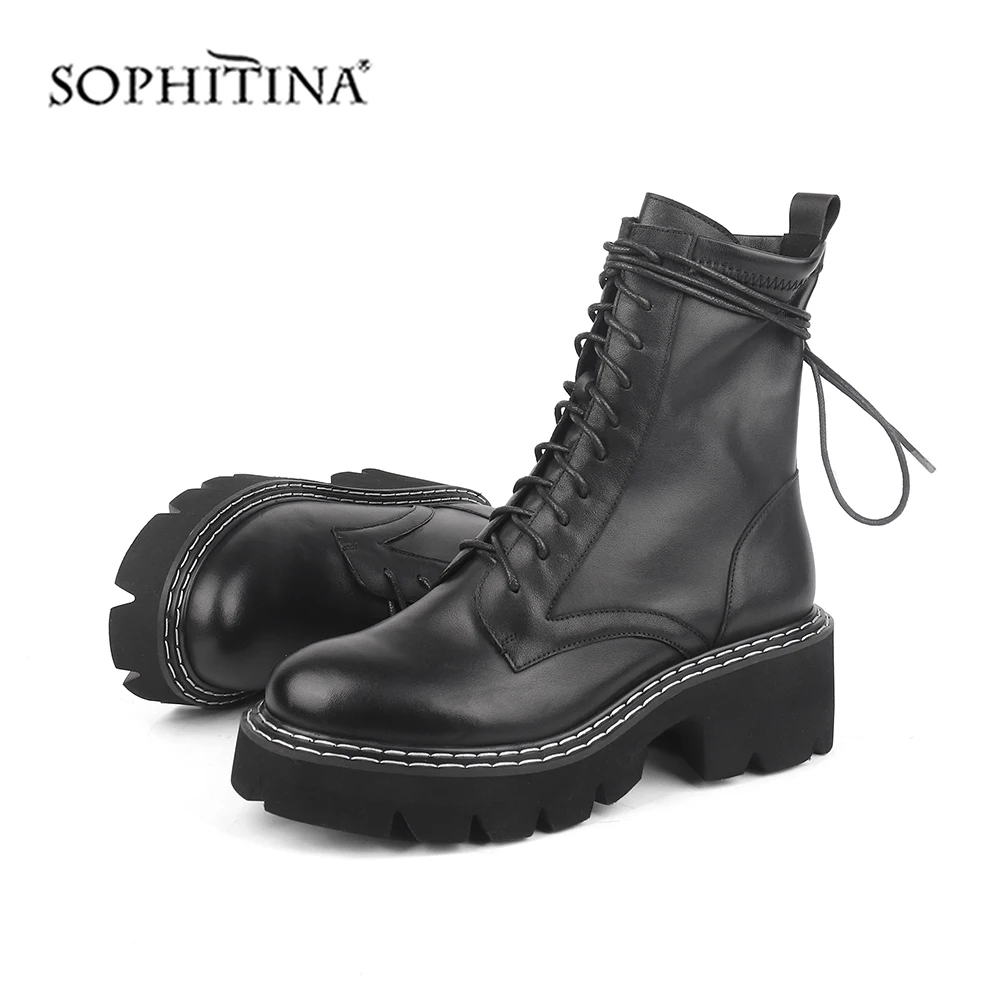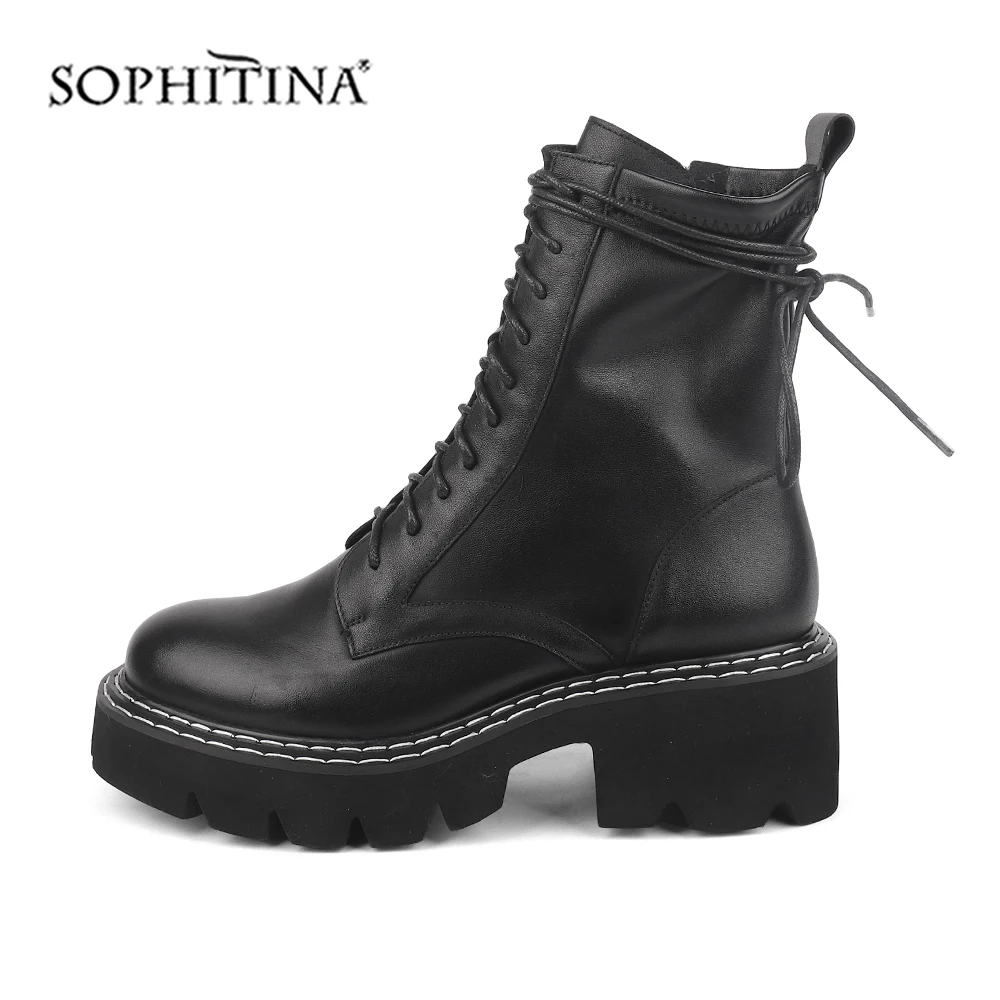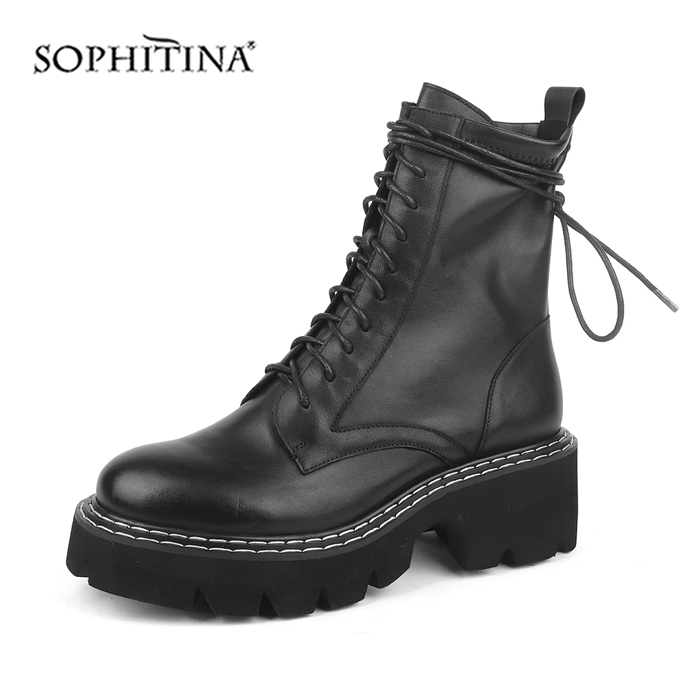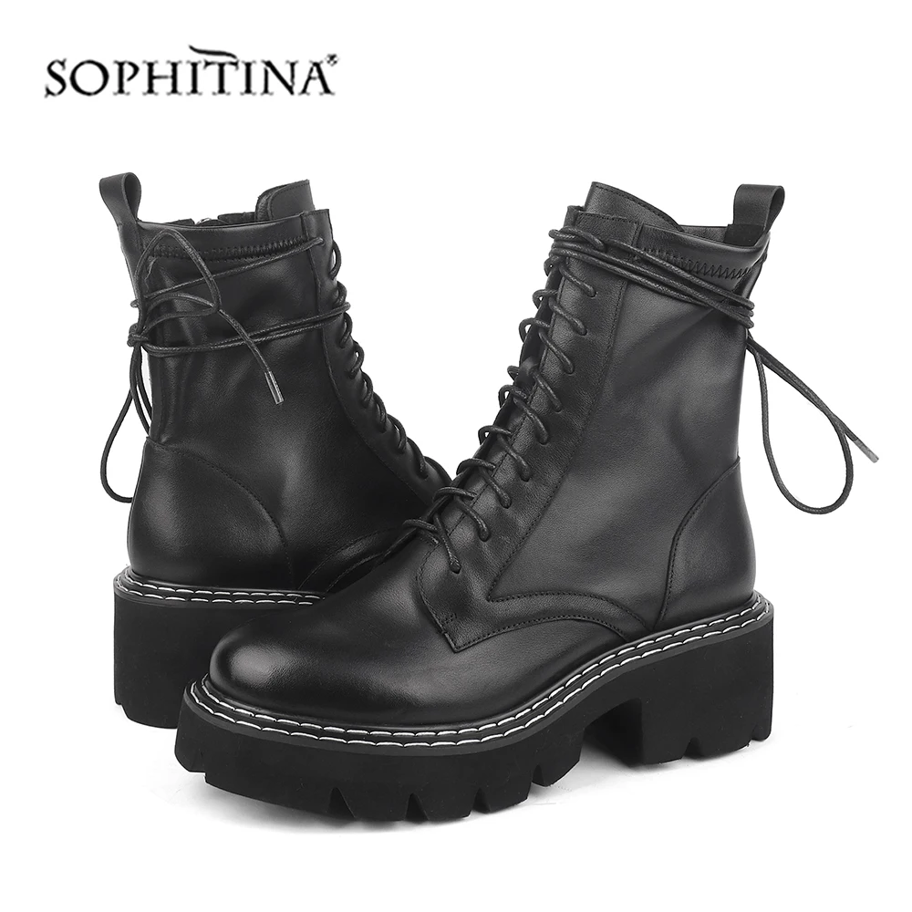 Promo SOPHITINA Winter Martin Boots Fashion Solid High Quality Genuine Leather Warm Locomotive Style Shoe